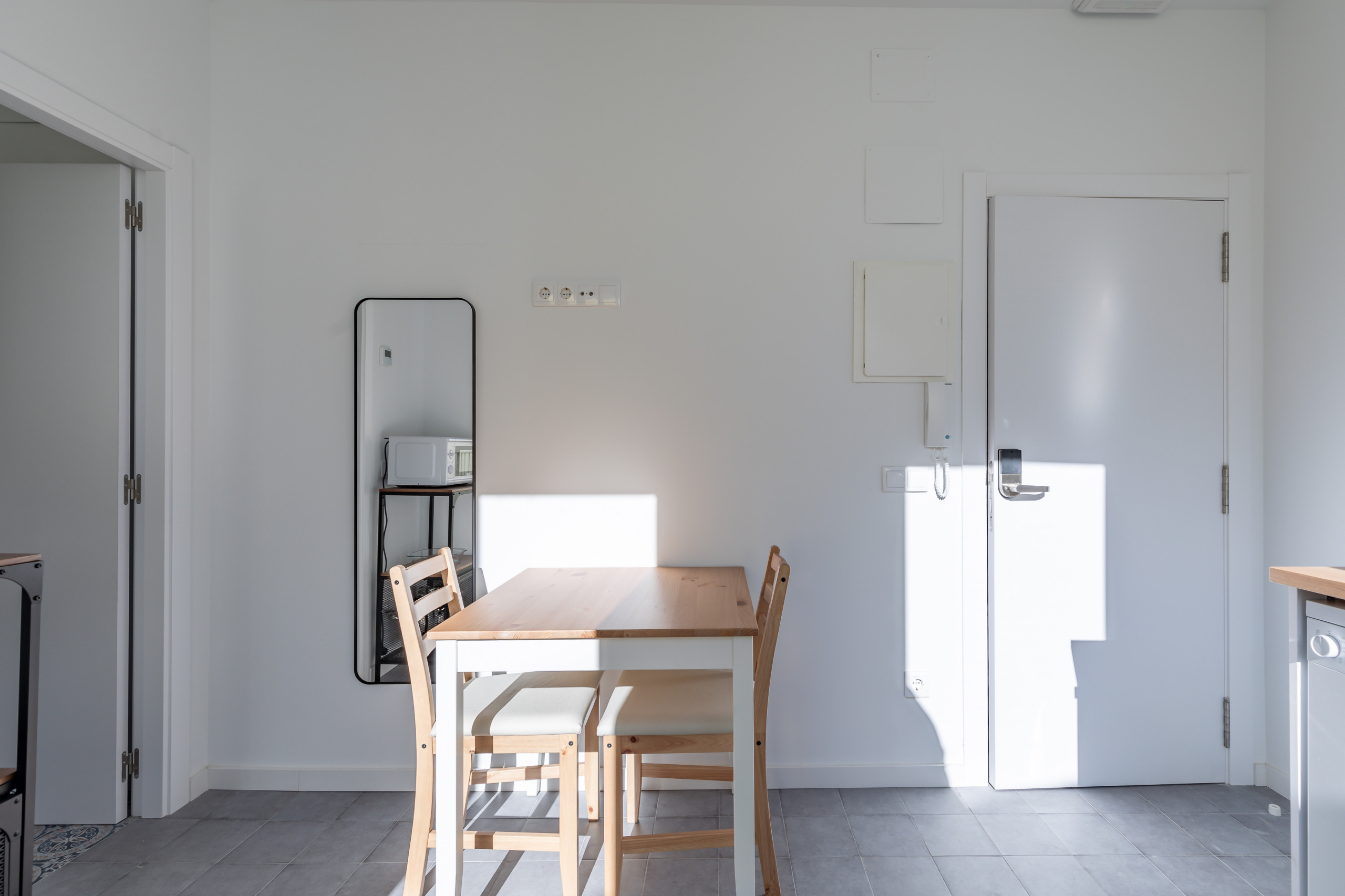 La cucina è attrezzata con frigorifero, fornello, lavastoviglie, microonde, macchina da caffè e bollitore elettrico, tutti nuovi di zecca. Insieme a un set completo di posate, bicchieri da vino, piatti, pentole e padelle. Tutto ciò che potrebbe servire per cucinare e mangiare a casa.